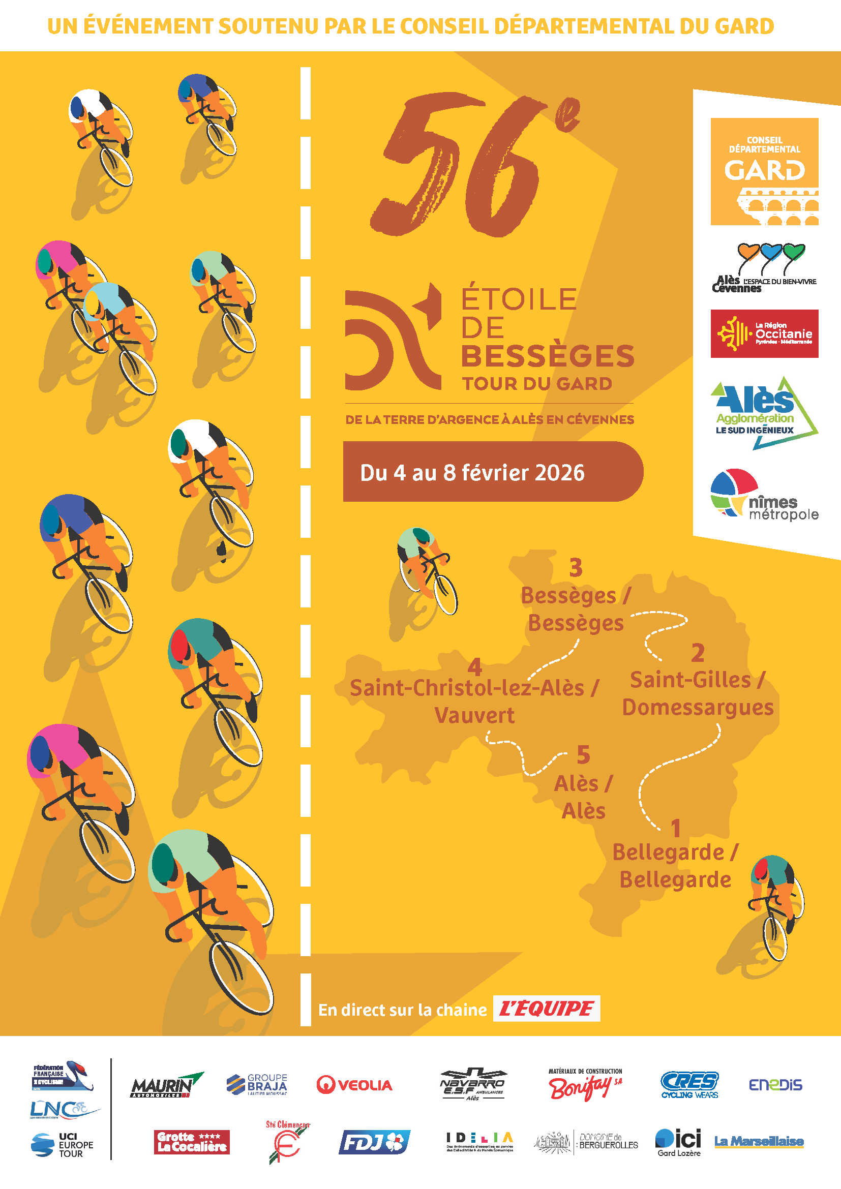 Bessèges , FranceL’Étoile de Bessèges - Tour du Gard a été créée en 1971 par Roland Fangille, ex-coureur cycliste. Première course européenne par étape dans le calendrier professionnel, l’Étoile de Bessèges a construit son histoire autour de trois piliers indissociables : patrimoine, performance et proximité. Animée par une équipe de bénévoles passionnés, la course s’est toujours réinventée, […]