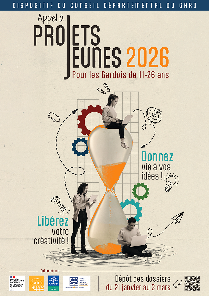 Le Conseil départemental du Gard, la Caisse d’allocations familiales, la Mutualité sociale agricole du Languedoc ainsi que le service Jeunesse, Engagement et Sports (SDJES) de l’Éducation nationale proposent chaque année un Appel à projets jeunes destiné à soutenir les initiatives sur le territoire. Celui-ci a pour objectif d’aider les jeunes, notamment les adolescents, à concrétiser leurs projets.